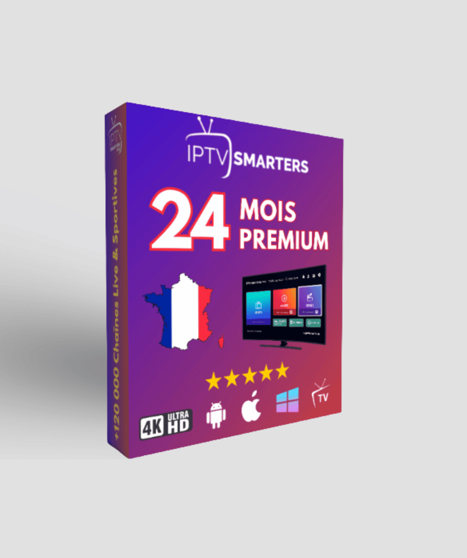 Profitez d’un service IPTV ultra-stable avec toutes les chaînes FR, sports, cinéma et séries pendant 24 mois. Compatible IPTV Smarters, Smart TV et tous les appareils.